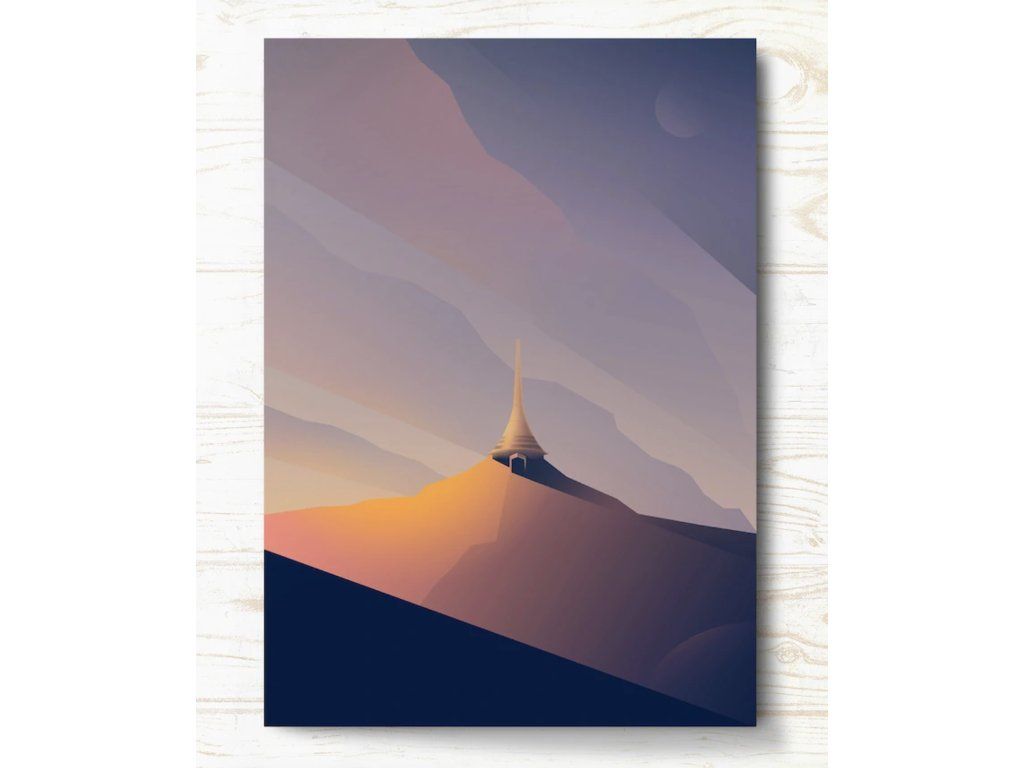 Minimalistická ilustrace krásného místa, které snoubí úžasnou architekturu s fantastickou přírodou.